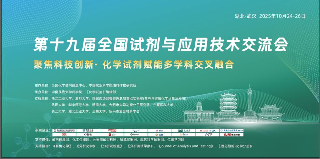 為發揮化學試劑在生命健康、能源環境、解決卡脖子問題等重大戰略中的支撐作用,全面展示化學試劑領域所取得的最新研究進展和成果,推動化學試劑相關產業高質量發展。全國化學試劑信息中心定于2025 年 10 月24日至26 日在湖北省武漢市中南民族大學召開第十九屆“全國試劑與應用技術交流會”。