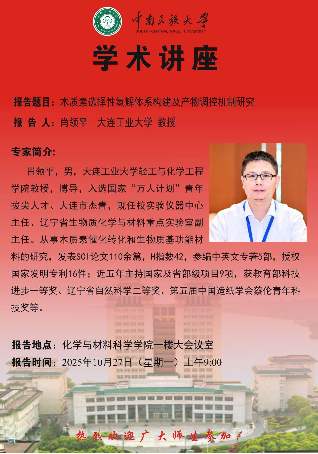 【學術預告】木質素選擇性氫解體系構建及產物調控機制研究