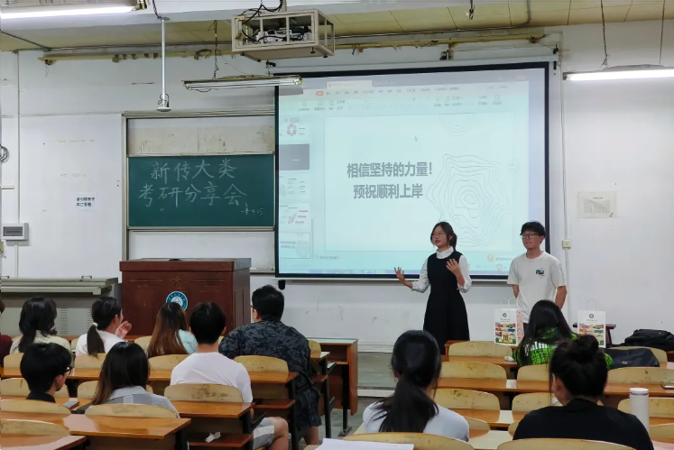 本站訊(通訊員楊哲亦 王怡琳 攝影甄妍冰)為積極響應新時代對高素質專業人才的需求,助力文傳學子明晰考研方向、優化備考策略,以科學的方法和堅定的信念迎接考研。4月26日晚,學院極星導生團隊于1號教學樓201教室,成功舉辦“星光引路,‘研’途筑夢”新傳大類考研經驗分享會。活動特邀2021級兩位優秀學生代表作為嘉賓,分享他們的考研心得。活動由2022級輔導員王冰瀅老師主持。