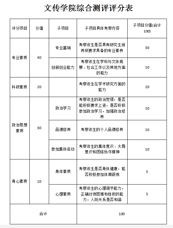 綜合測評成績總分為100分。