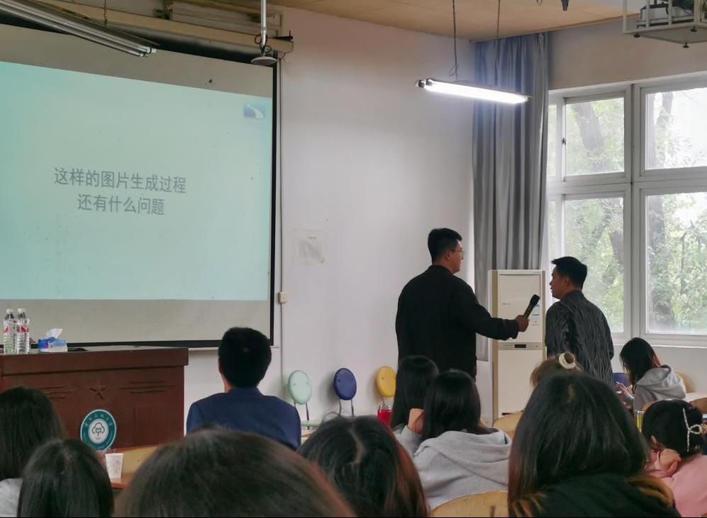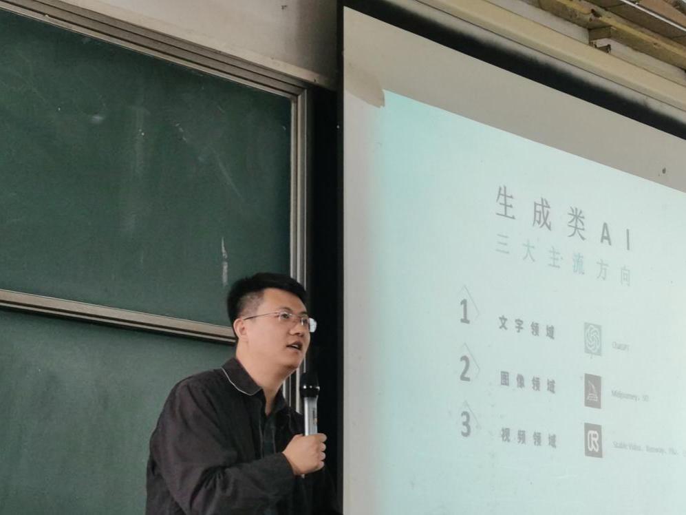 羅曉賢主任首先從新媒體時(shí)代傳統(tǒng)媒體所面臨的挑戰(zhàn)出發(fā),指出盡管媒體傳播視角與文稿的調(diào)性正在經(jīng)歷變革,然而新聞工作者所需具備的基礎(chǔ)能力卻從未改變。他進(jìn)一步強(qiáng)調(diào),即便是在AI輔助創(chuàng)作背景下,審美能力和創(chuàng)作能力仍是新聞工作者不可或缺的重要素養(yǎng)。羅主任結(jié)合自身的從業(yè)經(jīng)驗(yàn)探討了短視頻創(chuàng)作中的結(jié)構(gòu)布局、技巧運(yùn)用及其創(chuàng)新之道,強(qiáng)調(diào)了借勢和熱點(diǎn)追蹤的重要性,為同學(xué)們理解和掌握短視頻創(chuàng)作提供了多維視角。隨后,他以多個(gè)生成式AI軟件為例,從文字、圖片、視頻三個(gè)方面展示了生成式AI在工作、學(xué)習(xí)中的實(shí)際運(yùn)用,他指出:“技術(shù)在提升傳播效果方面能力強(qiáng)大,但面對(duì)技術(shù)浪潮下的內(nèi)容競爭,既要保持與技術(shù)的對(duì)話,也不能將導(dǎo)向全部交由技術(shù)。”