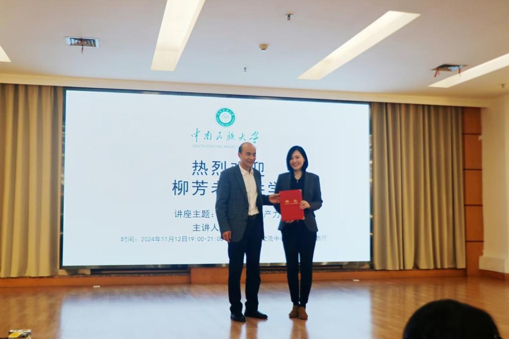 本站訊(通訊員:楊曉旭 攝影:楊曉旭)11月12日晚上,學院邀請湖北省電視臺新聞中心副主任柳芳來到我院進行題為《“言”值也是生產力》的講座,講座由陳峻俊教授主持,院長陶喜紅教授為其頒發校碩士研究生兼職指導教師聘書,王鈞副教授以及學院本科生、碩士生參加。