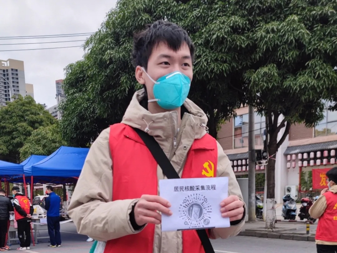 我主要負責維護現場的排隊秩序和幫助一些不會使用智能手機的爺爺奶奶下載注冊桂核酸APP,對于找不到對應地點的人我一般會講明地點指明路線,必要時我會主動帶領他們前往對應地點。遇到插隊破壞秩序的現象時,我一般會禮貌提醒,詢問原因,耐心勸說。
