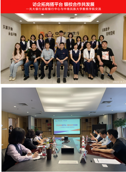 為深入貫徹落實教育部“全國高校書記校長訪企拓崗促就業專項行動”,深化產教融合校企合作,6月1日,院黨委書記李海濤帶隊,副院長夏永波、黨委副書記郭琳、應用數學教研室主任彭超權、統計學教研室主任王維峰以及畢業班輔導員張箐沁等一行6人赴光大銀行遠程銀行中心武漢分中心進行考察交流,武漢分中心負責人李艷芳處長、經理易珉等參與接待與交流。