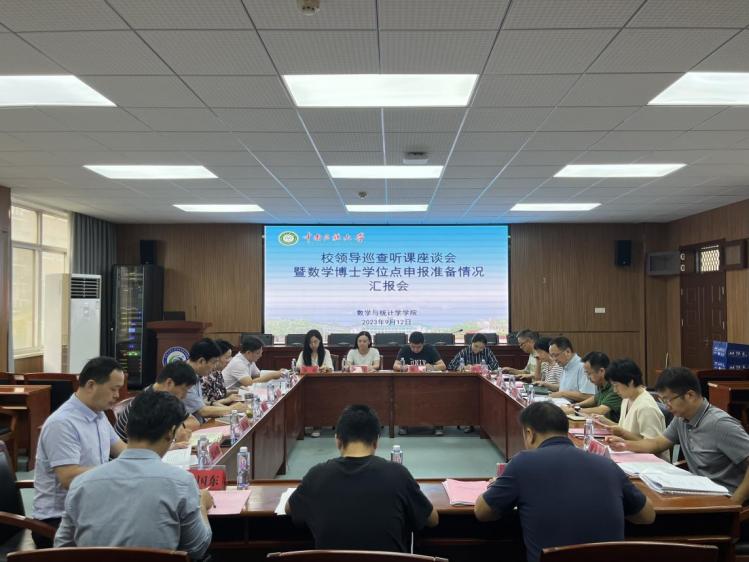 9月12日上午,校黨委副書記、校長李金林帶領黨委保衛部、教務處、研究生院、國有資產與實驗室管理處等部門負責人深入我院課堂一線巡查聽課,并調研指導數學博士點申報工作。學院領導班子及教師代表參加調研座談會。會議由學院黨委書記郭暉主持。