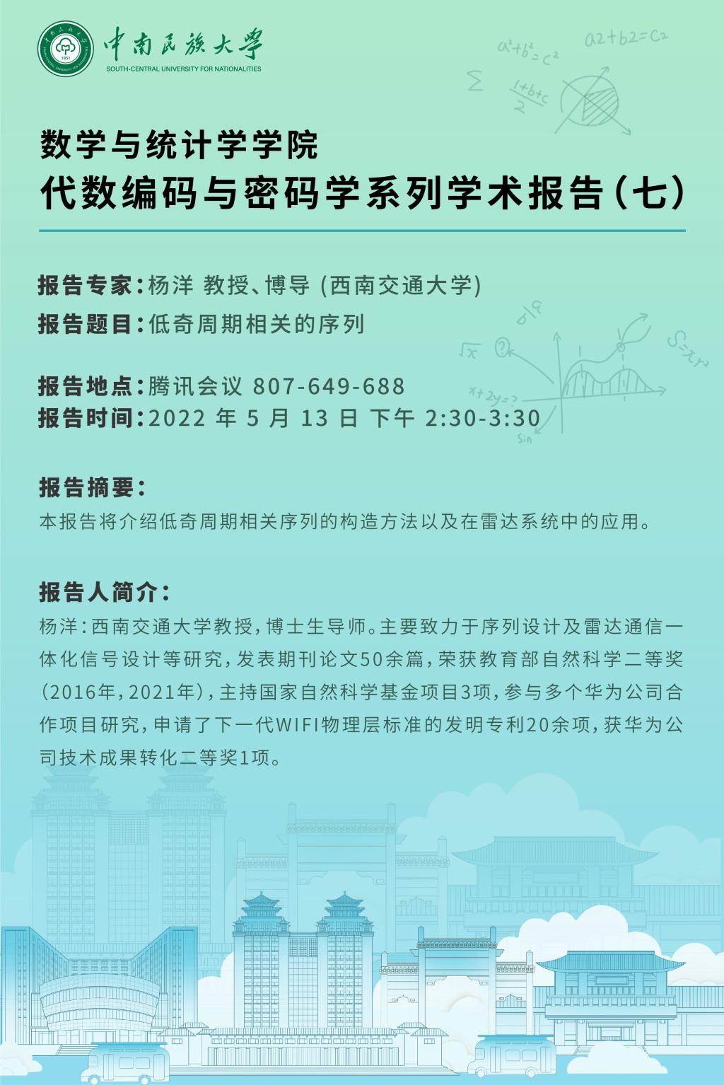 【學術(shù)講座】5月13日西南交通大學楊洋教授學術(shù)講座通知