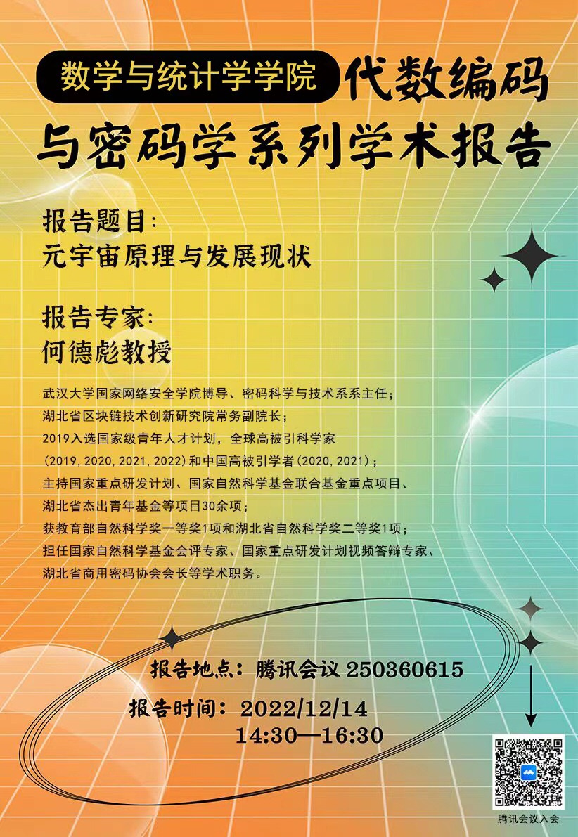 【學術講座】12月14日武漢大學何德彪教授學術講座通知