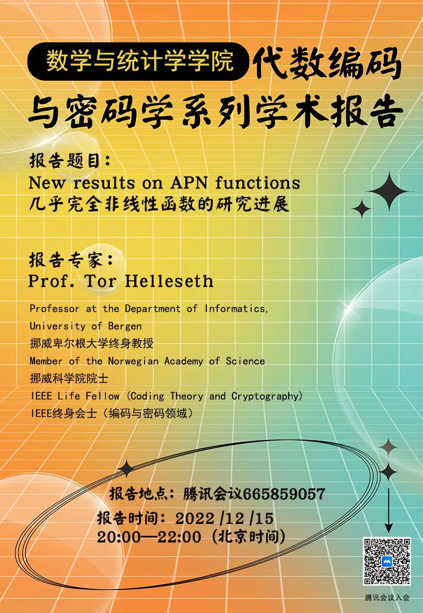 【學術講座】12月15日挪威卑爾根大學Tor Helleseth教授學術講座通知