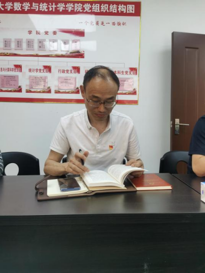 6月13日下午,數(shù)學(xué)與統(tǒng)計(jì)學(xué)學(xué)院全體黨委委員在9號(hào)樓129會(huì)議室深入開(kāi)展學(xué)習(xí)習(xí)近平新時(shí)代中國(guó)特色社會(huì)主義思想讀書(shū)班第十次學(xué)習(xí)會(huì)。此次學(xué)習(xí)會(huì)由學(xué)院黨委委員、副院長(zhǎng)朱忠熏、張軍好2位同志領(lǐng)學(xué)《習(xí)近平新時(shí)代中國(guó)特色社會(huì)主義思想學(xué)習(xí)綱要(2023 年版)》相關(guān)內(nèi)容。學(xué)院黨委委員參與學(xué)習(xí)。