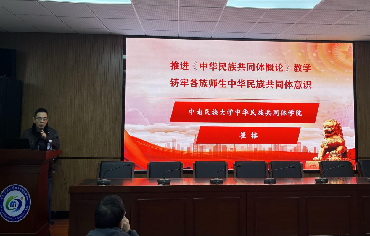 為貫徹中共中央政治局第九次集體學(xué)習(xí)會議精神,落實(shí)國家民委、學(xué)校有關(guān)工作部署。11月30日下午,學(xué)院特邀中南民族大學(xué)中華民族共同體學(xué)院崔榕教授在學(xué)院309會議室為我院全體教師作題為《推進(jìn)〈中華民族共同體概論〉教學(xué) 鑄牢中華民族共同體意識》主題宣講,學(xué)院領(lǐng)導(dǎo)班子成員、全體教工參加了此次宣講會,會議由學(xué)院黨委書記郭暉主持。