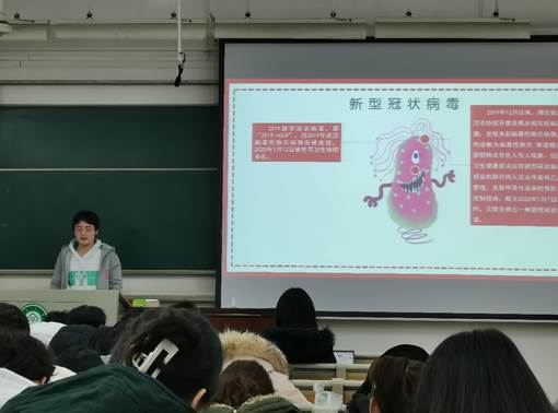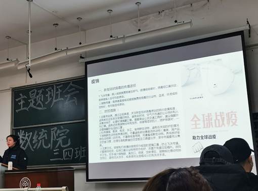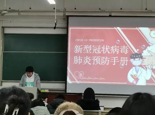 在主題班會上,各班團支書從認識新冠肺炎展開,向同學們科普了新型冠狀病毒、新冠肺炎、新冠肺炎的傳染源及主要癥狀等相關知識。