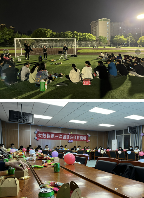 活動大致分為自我介紹、才藝展示、互動游戲和獎品兌換四個環(huán)節(jié),但兩個團支部的活動又各具特色。應(yīng)數(shù)團支部的團建活動舉辦地點在南區(qū)操場,大家圍圈席地而坐,并邀請了DJ嘉賓全程伴奏,氛圍感拉滿。在互動游戲環(huán)節(jié),123木頭人、你畫我猜等多種游戲都緊跟當(dāng)下年輕人的潮流,讓每一位同學(xué)都參與其中。其中游戲懲罰環(huán)節(jié),更是有“廣西科目三”、“擦玻璃”等熱門舞蹈的展示,引得大家掌聲不斷。大數(shù)據(jù)團支部邀請了班導(dǎo)師賈小英老師和輔導(dǎo)員朱浩軍老師參與班級團建,并讓兩位老師加入分組游戲與大家同樂。大數(shù)據(jù)把所有同學(xué)分成七個小組,整個游戲過程分為傳聲筒、競猜歌名、數(shù)字問答、線傳乒乓等4個小游戲,各個小組贏得比賽后將獲得相應(yīng)積分,最終獲勝的前兩組將獲得精美禮品。活動最后,賈老師總結(jié)到,通過本次活動她感受到了大數(shù)據(jù)學(xué)生的青春與活力,即便當(dāng)下受疫情影響,大家可以在這段抗疫時光里收獲更難能可貴的美好大學(xué)友情。