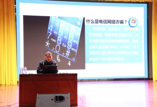來自武漢東新分局鐵箕山派出所的主講人吳高濤警官,從當前網絡詐騙的形勢、電信網絡詐騙中的黑灰產業鏈、易遭遇的電信網絡詐騙以及如何防范電信網絡詐騙四個角度為同學們帶來了一場精彩全面的知識普及。