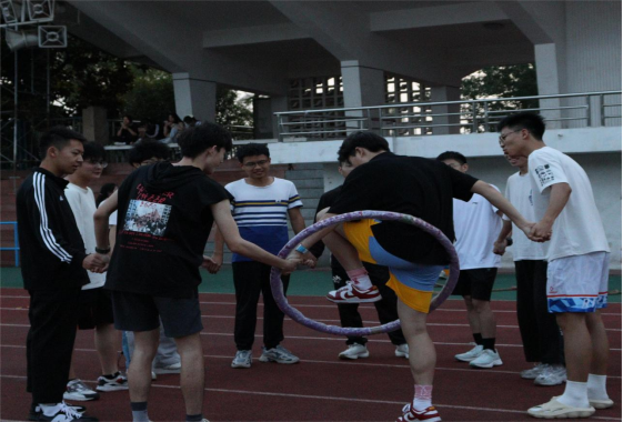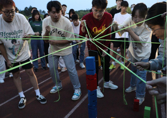 “山積而高,澤積而長”,數(shù)學(xué)類2206班團(tuán)支書李睿同學(xué)如是感嘆道。團(tuán)日活動精彩紛呈,高潮迭起。“趣味拔河”,各團(tuán)支部鉚足一股勁,擰成一股繩,激烈角逐,“繩”采飛揚(yáng);“珠行萬里”,同學(xué)們一彎一拾,小球穿越于眾人的“股掌”間,劃過的每一道痕跡,丈量著彼此“心”的間距;“一圈到底”,同學(xué)們手挽手、肩并肩,呼啦圈越過頭頂?shù)幕【€,透出青春底色,奏響團(tuán)結(jié)樂章;“合力搭搭”,十繩連心,呼吸與共,同學(xué)們俯身撐繩,屏息凝神,合力搭建起一樁樁“青春”的高樓。