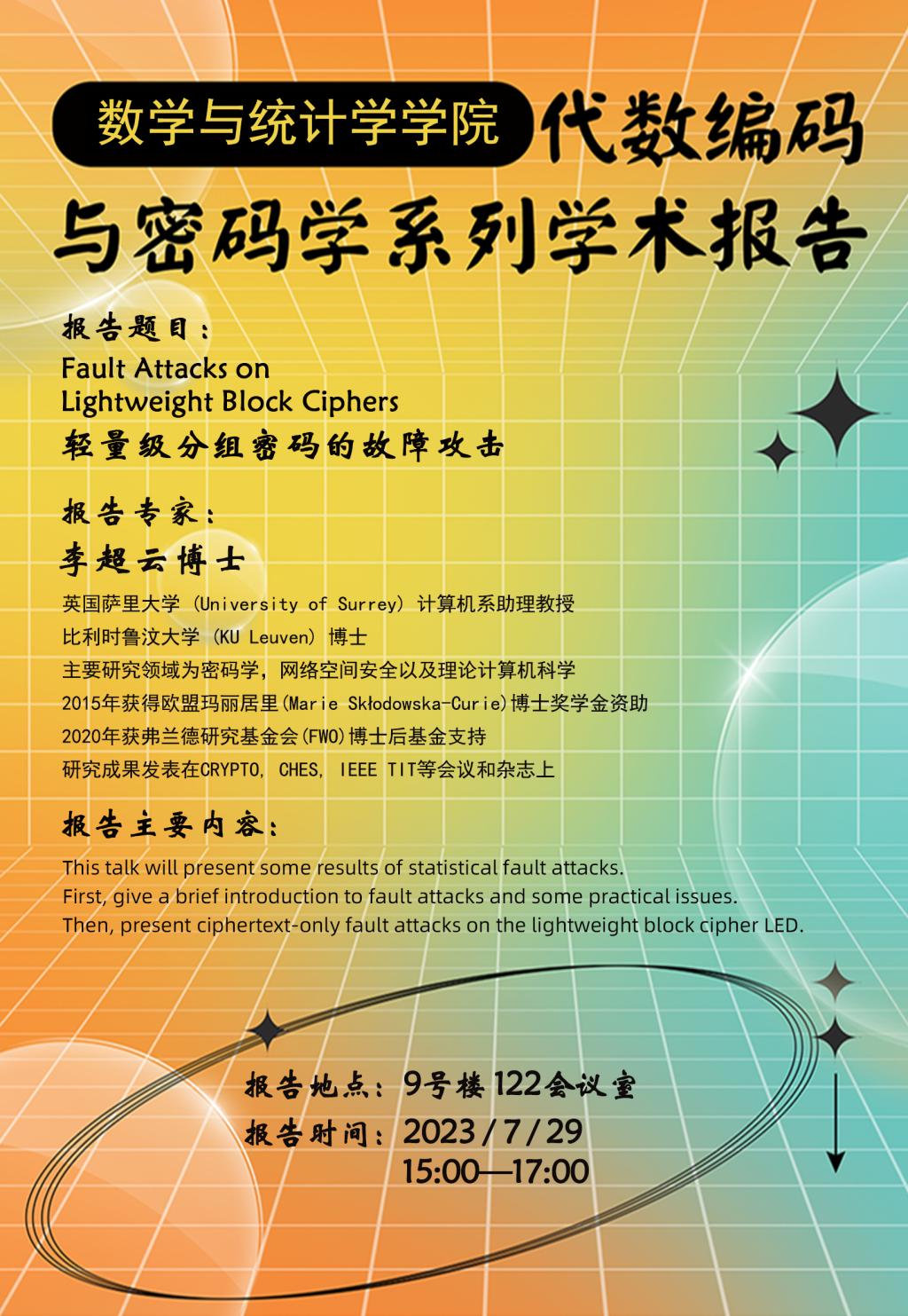 【學術講座】7月29日英國薩里大學李超云博士學術講座通知