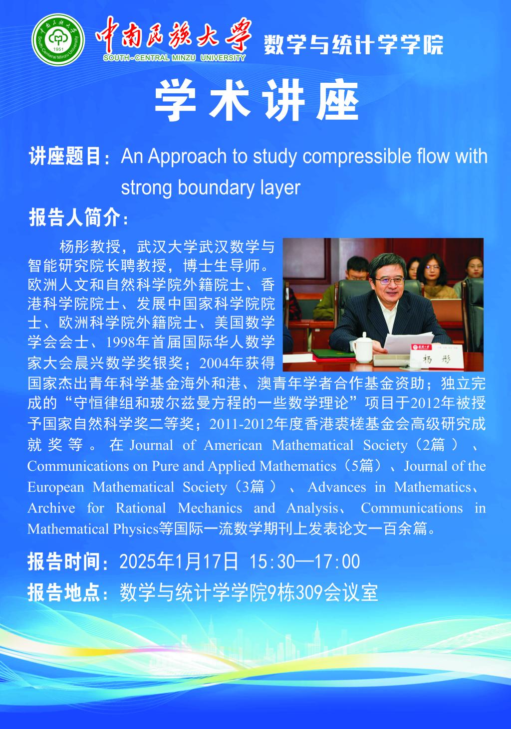 主講人簡介:歐洲人文和自然科學院外籍院士、香港科學院院士、發展中國家科學院院士、歐洲科學院外籍院士、美國數學學會會士、1998年首屆國際華人數學家大會晨興數學獎銀獎;2004年獲得國家杰出青年科學基金海外和港、澳青年學者合作基金資助;獨立完成的“守恒律組和玻爾茲曼方程的一些數學理論”項目于2012年被授予國家自然科學獎二等獎;2011-2012年度香港裘槎基金會高級研究成就獎等。在Journal of American Mathematical Society(2篇)、Communications on Pure and Applied Mathematics(5篇)、Journal of the European Mathematical Society(3篇)、Advances in Mathematics、Archive for Rational Mechanics and Analysis、Communications in Mathematical Physics等國際一流數學期刊上發表論文一百余篇。