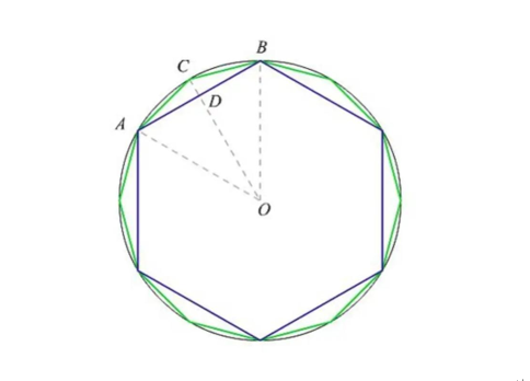 魏晉時期(公元3世紀),我國的數(shù)學(xué)家劉徽在《九章算術(shù)注》中寫到:“以六觚之一面乘半徑,因而三之,得十二觚之冪。若又割之,次以十二觚之一面乘半徑,因而六之,則得二十四觚之冪。割之彌細,所失彌少。割之又割,以至于不可割,則與圓合體,而無所失矣?!边@里“觚”是正多邊形,“面”是正多邊形的邊,“冪”是正多邊形的面積。劉徽的方法就是先做一個圓內(nèi)接正六邊形,然后平分每組對邊的弧,作出圓的內(nèi)接正十二邊形,同樣的方法繼續(xù)作圓的內(nèi)接正二十四邊形、四十八邊形……正多邊形的邊數(shù)越多,即所謂“割之彌細”,圓的面積與正多邊形的面積相差就越少。當(dāng)分割次數(shù)無限增加,也就是正多邊形的邊數(shù)無限增大時,正多邊形將與圓重合。用我們今天的說法就是圓內(nèi)接正多邊形面積的極限即為圓面積。這就是劉徽著名的割圓術(shù),割圓術(shù)是極限思想在幾何上的應(yīng)用。