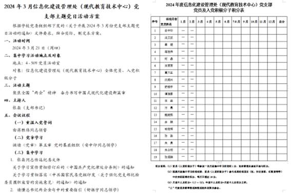 信息處黨支部3月主題黨日活動方案及黨員積分表。余鵬供圖
