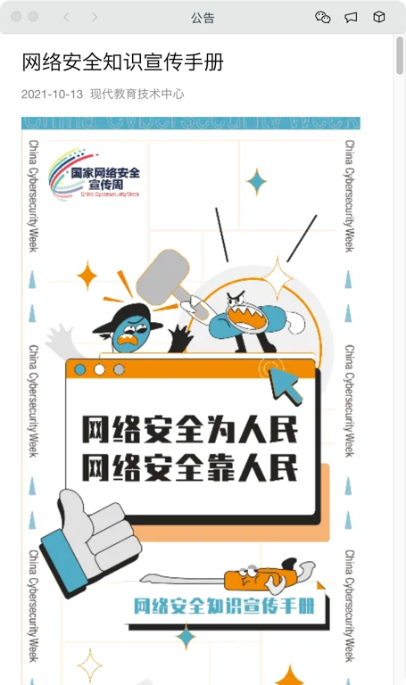 為深入貫徹“2021年國家網絡安全宣傳周”工作的總體要求,中心積極謀劃,圍繞本次宣傳周主題“網絡安全為人民,網絡安全靠人民”,開展了一系列富有成效的工作。