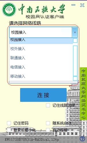 客戶端底部的復選框支持記住密碼、自動連接、開機啟動等功能,建議在自己電腦上使用客戶端認證時可勾選上述信息。