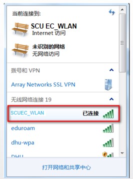 目前SCUEC_WLAN支持所有主流終端和操作系統(tǒng),下面列出 Windows7 的配置方法。