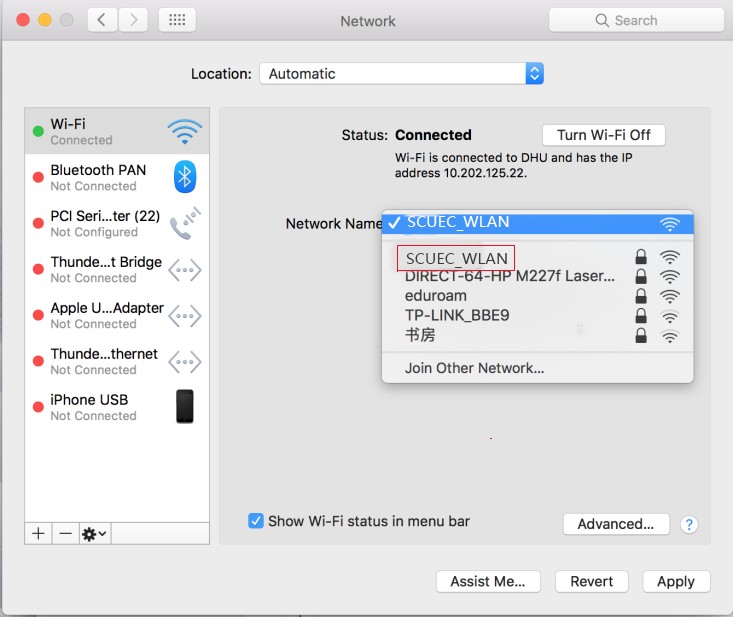 目前SCUEC_WLAN支持所有主流終端和操作系統(tǒng),下面列出 蘋果MacOS(電腦)系統(tǒng) 的配置方法。