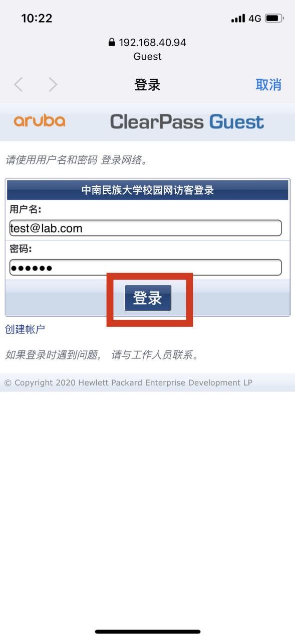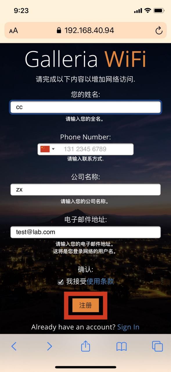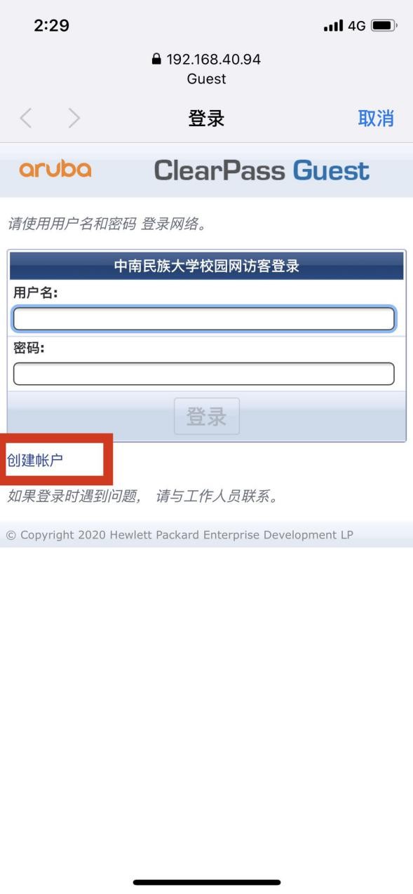(1) 連接Guest(portal認(rèn)證),點(diǎn)擊創(chuàng)建賬戶,跳轉(zhuǎn)到注冊(cè)界面;