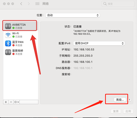 3.找到你要查看MAC地址的網卡,點擊右下角的"高級"選項。