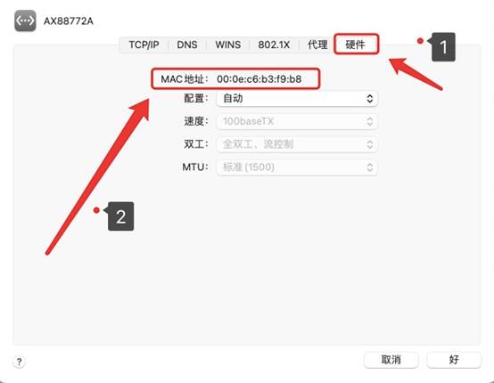 4.在“硬件”欄里,可以查看到MAC地址。