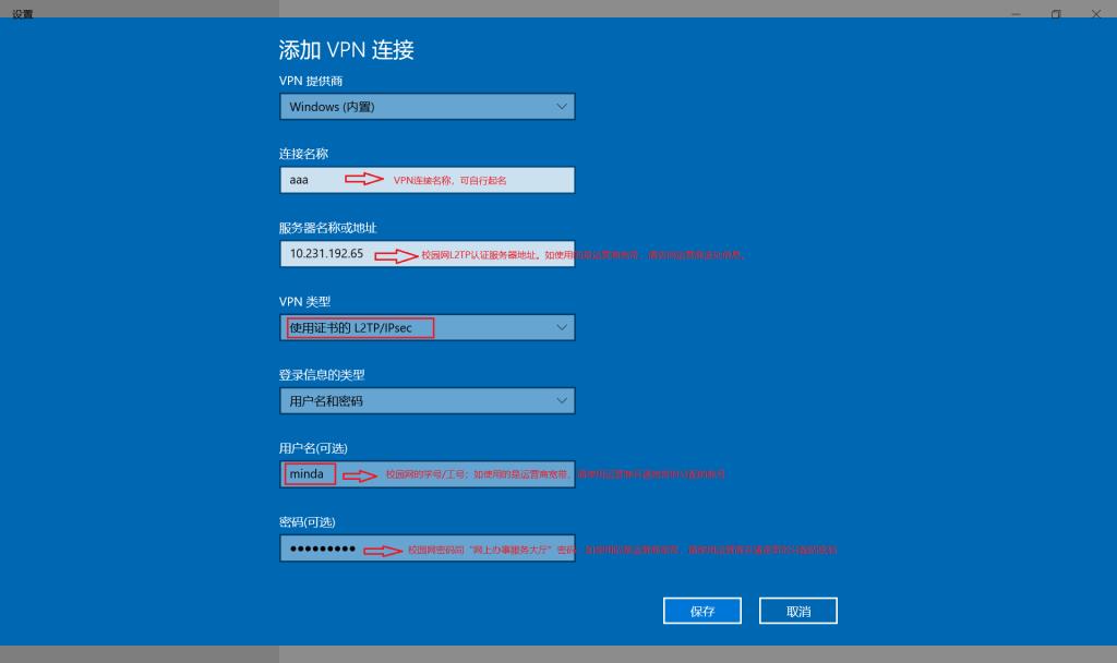 上圖中,如在校內(nèi)(校園網(wǎng)環(huán)境下)服務(wù)器名稱或地址欄填寫:10.231.192.65;如在校外(非校園網(wǎng)環(huán)境下)服務(wù)器名稱或地址欄填寫:59.68.63.7,其他文本框填寫內(nèi)容和圖中保持一致。