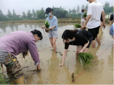 學(xué)生在插秧
