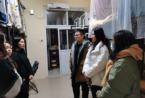 在學(xué)生寢室,老師們詳細(xì)詢問了同學(xué)們目前的學(xué)習(xí)生活情況,以及大家離校回家的具體時間,重點關(guān)注了同學(xué)們的疫情防控落實情況和假期安排,著重提醒學(xué)生一定要注意人身和財產(chǎn)安全。老師們要求大家遵守疫情防控政策、落實相關(guān)要求和規(guī)定,并加強體育鍛煉保持身體健康;經(jīng)常與家人、朋友聯(lián)系,保持良好的心理狀態(tài);嚴(yán)格遵守學(xué)校相關(guān)規(guī)章制度,有任何問題和困難及時與老師聯(lián)系。