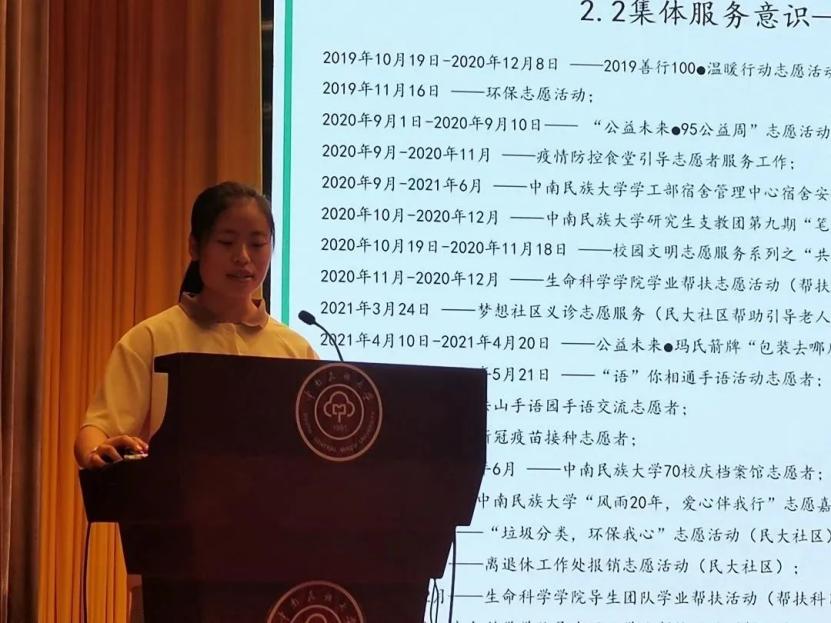 她的學生工作經歷十分豐富,在校期間她擔任生物育種1901班文體宣委員,加入生命科學學院學習部導生團隊、中南民族大學校團委新媒體團隊、新長城中南民族大學自強社等團隊,受聘為圖書館館長助理。