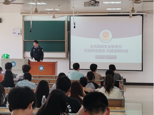 “國家安全是民族復興的根基。”2024年4月15日是第九個全民國家安全教育日,為了加強同學們的國家安全意識,承擔維護國家安全的責任和義務,生命科學學院邀請了武漢市公安局網絡安全保衛支隊任忠良警官及其隨行的兩名隊友對2023級全體本科生同學進行以“拒絕網絡謠言,共建清朗校園”為主題的國家安全教育宣講,此次宣講由23級輔導員李茜老師主持。