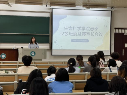 4月22日中午,學院舉辦了2022級本科生班委及寢室長會議,會議由2022級輔導員陳琦老師主持,生科院2022級各班班委和寢室長參加此次會議。