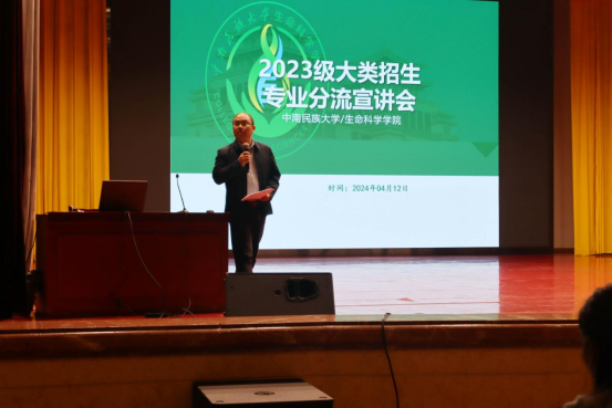生命科學學院于4月12日在學術會堂開展專業分流宣講會。本次大會旨在為學生提供專業選擇的指導和職業發展的啟示,為他們在日益多元化的就業市場中定位自我、規劃未來道路。學院領導、各專業負責人以及23級全體學生參會。
