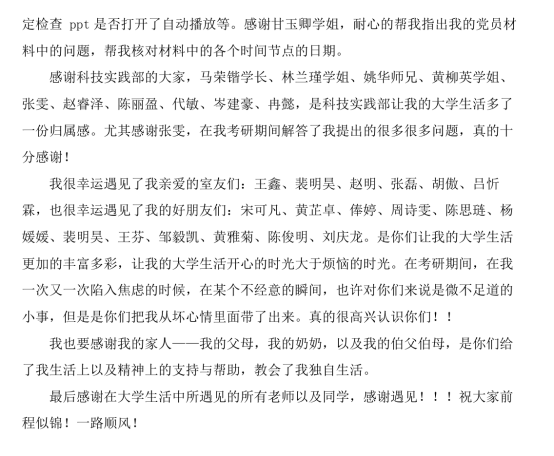 最后感謝在大學生活中所遇見的所有老師以及同學,感謝遇見!祝大家前程似錦!一路順風!