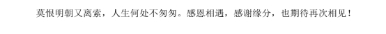 莫恨明朝又離索,人生何處不匆匆。感恩相遇,感謝緣分,也期待再次相見!