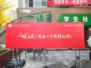 活動現場,精心布置的考研加油板率先映入眼簾,這塊以考研加油標語為主題的展板成為同學們情感的“宣泄口”。大家紛紛拿起馬克筆,鄭重地寫下加油鼓勁的話語,一筆一劃間滿是對自己金榜題名的決心。有的同學留下個性簽名,讓加油板變成了夢想與信念交織的展示區。這些獨特印記是同學們心底信念的呈現,彰顯著他們對于現在的勸勉和未來的期許。