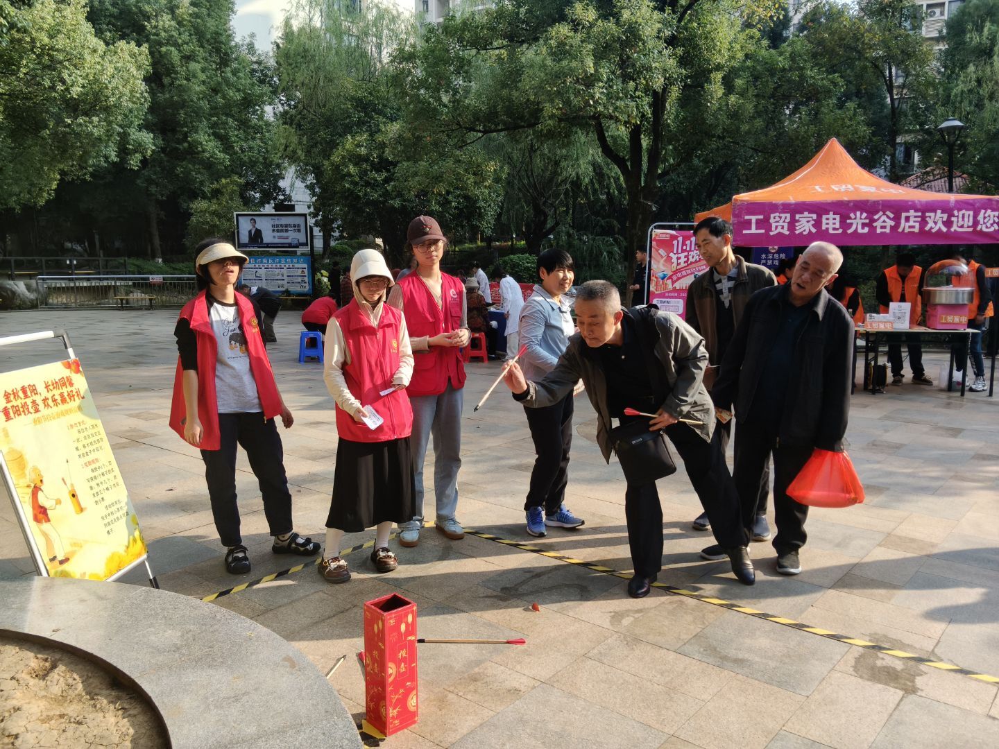 有負責趣味投壺區(qū)的志愿者,她們也忙地不可開交。志愿者提前將投壺道具擺放整齊,細致地講解規(guī)則。面對初次嘗試的老人,志愿者們會蹲下身示范握箭姿勢,一遍遍強調發(fā)力技巧。當老人成功投中時,志愿者立刻遞上橘子小票,他們的笑容比秋日陽光更暖。老人們可以去兌票處憑小票換取對應的物品。