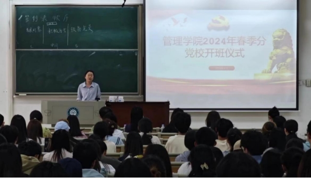 4月24日中午12時,管理學院春季分黨校培訓班在11棟100室莊重開幕。學院副院長周運蘭、2021級輔導員田堯、2022級輔導員曾城皓出席開班儀式,第97期入黨積極分子培訓班學員、第16期發展對象培訓班學員、第17期預備黨員培訓班學員共238人參加。開班儀式由學院分黨校班主任、2020級輔導員王衛主持。