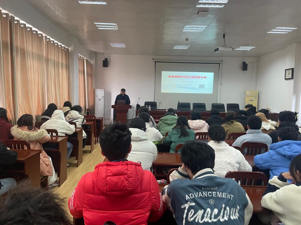 12月19日下午,武漢輕工大學旅游研究中心主任周霄教授應邀在我校為旅游管理專業學生帶來了一場主題為《旅游強國時代的文旅創新發展》的專題講座。來自旅游管理專業的本科生和研究生共同參與了此次學術交流活動。