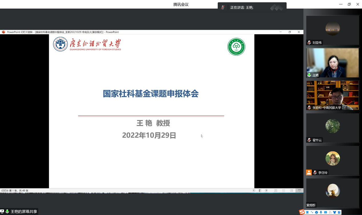為進一步提升我院老師科研能力以及同學們的學術研究能力,提高社科基金的申報成功率,我院特別邀請財政部國際化高端會計人才,廣東外語外貿大學云山杰出學者、校學術委員會委員王艷教授,于10月29日下午以線上交流的形式開展了主題為《國家社科基金申報體會分享》的學術講座。此次講座由中南民族大學科學研究發展院、中南民族大學管理學院、中南民族大學民族地區數字化發展與治理研究中心、中南民族大學高校風險預警防控研究中心和教育部民族院校會計學專業虛擬教研室聯合舉辦。管理學院院長張勁松教授、副院長翟華云教授、管理學院部分教師以及研究生共110余人參加了本次講座。講座由張勁松院長主持。
