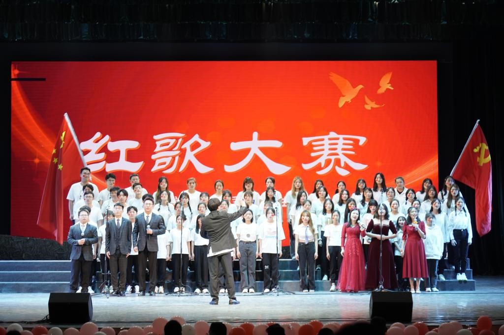 一首紅歌一面旗,17首振奮人心的經(jīng)典紅歌,贏得現(xiàn)場觀眾的陣陣鼓掌,掀起了一個(gè)又一個(gè)高潮。同學(xué)們用歌聲詮釋了感人至深的革命情懷和純真感情,表達(dá)了當(dāng)代青年學(xué)生對黨和國家的美好祝愿。巍巍中華,匯聚五千年文明,泱泱大國,縱橫九萬里風(fēng)云,《我和我的祖國》,一刻也不能分割;紅旗卷起農(nóng)奴戟,滿山開遍映山紅,改革開放舞東風(fēng),百姓生活日日升,歌唱《映山紅》,我們大步走在中國特色社會主義道路上;紅星閃耀已百年,薪火相傳中國夢,不忘炙熱赤子心,青年吹響復(fù)興號,《百歲之好,星火永存》;閃閃紅星放光芒,閃閃紅星指方向,黨的精神代代傳,民大學(xué)子心向黨,《紅星歌》溫暖眾人;跋涉萬水千山,我們《不忘初心》,不畏狂風(fēng)暴雨,我們砥礪前行;為了偉大復(fù)興的中國夢,我們邁著堅(jiān)定的腳步,我們吹響前進(jìn)的號角,《走向復(fù)興》將紅歌大賽推向了最高潮。
