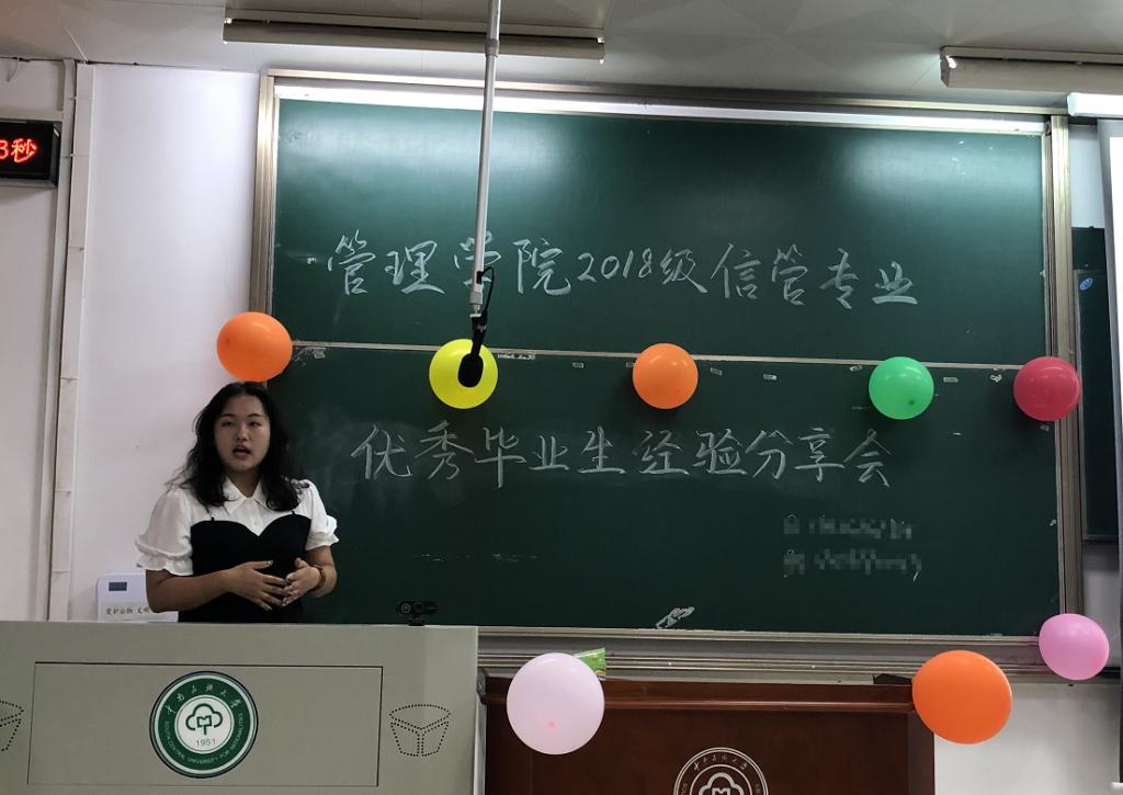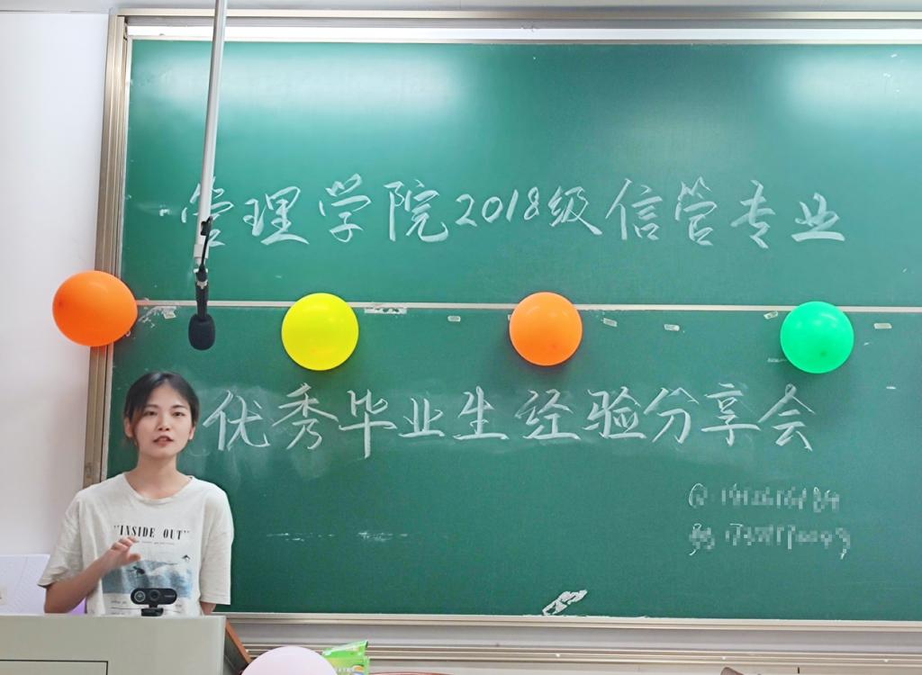 為充分發揮優秀畢業生的榜樣示范引領作用,管理學院信息管理專業于2022年6月8日晚6點半在15-305組織舉行了2018級優秀畢業學生經驗交流分享會,由信管專業在考研和就業方面取得了突出成績的10位優秀畢業生為大家分享經驗。本次會議由信息管理系主任楊單老師主持,信息管理專業2019級、2020級、2021級全體學生參加。