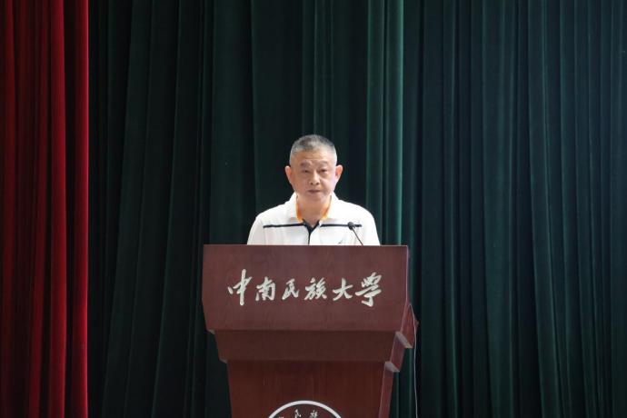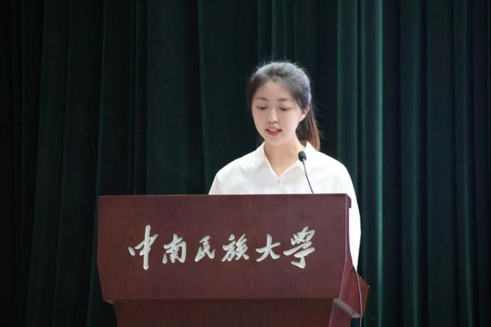 “雙塔高,百花艷,我的校園南湖邊?!遍_學(xué)典禮在師生合唱《中南民族大學(xué)校歌》中落幕。