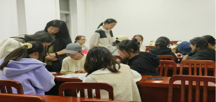 在主持人介紹完會計撲克比賽規則后,選手們進行第一階段賽前熱身。在此環節中大家互相幫助理解比賽規則,劉華老師等三位老師也親切指導并糾正選手們的知識誤區、與選手們討論相關知識,這在提高選手們競爭意識的同時更體現了學生間友愛互助以及師生間親密溝通的氛圍。到了正式比賽,選手們展開激烈競爭,現場氣氛熱烈非凡。賽場中,擺放著一張張整齊的桌椅,參賽者們圍坐四周,全神貫注于手中的會計撲克。每一位參賽者的神情都嚴肅而認真,眉頭時而緊皺,時而舒展,眼睛緊緊盯著撲克上的會計科目,腦海中迅速回憶著,就像專業的棋手在對弈中思考著下一步的走法。現場不時傳來討論聲,有的是小組內成員輕聲核對數據,有的是對規則理解產生分歧的短暫交流,聲音交織在一起,卻絲毫不顯雜亂