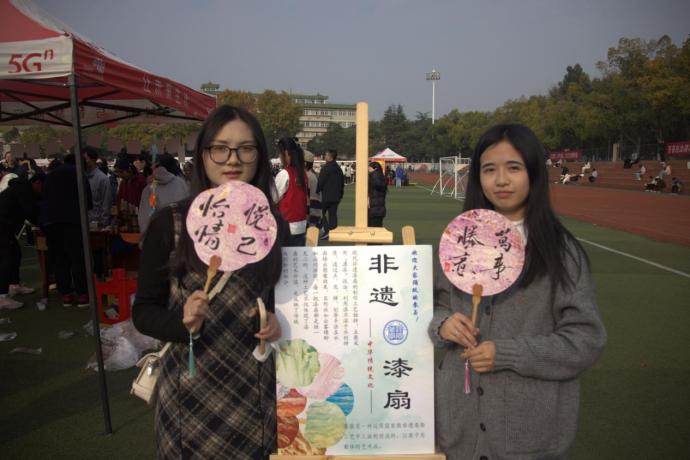 (同學們展示自己制作的漆扇 郭妍希攝)