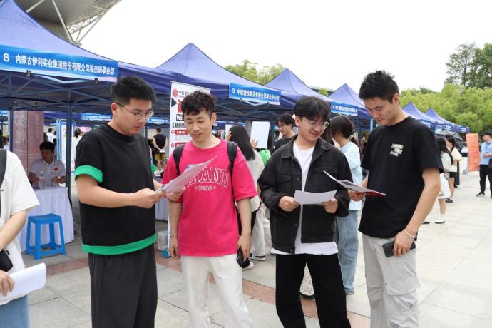 (管理學院黨委副書記李明亮、輔導員、班導師陪同學生參加春招活動)