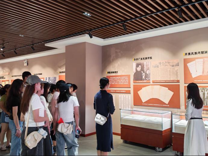 觸摸校史脈搏,厚植民大情懷。10月1日上午,秋陽正好,管理學院2025級輔導員田堯帶領30余名學院2025級本科生代表走進校史館,以一場沉浸式的“歷史課堂”開啟新生入學教育,引導青年學子樹立“鑄牢中華民族共同體意識”,真切感受“民大人”篤信好學、自然寬和的精神之力,厚植愛校榮校情懷,錨定成長方向。